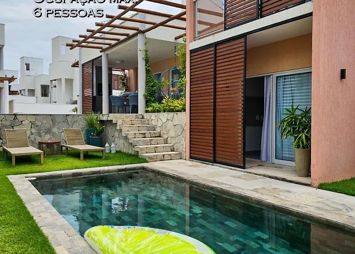 Esta casa de vacaciones se encuentra a un corto paseo de la Bahía de los Delfines. A 10 minutos en coche se encuentra la Playa do Madeiro, donde los huéspedes podrán disfrutar de experiencias de bienestar. Los huéspedes también pueden visitar el Chapadão, situado a unos 1 km.